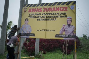 LHOKSEUMAWE – jurnalpolisi.id Sat Lantas Polres Lhokseumawe memasang spanduk himbauan rawan lakalantas di KM 31 Gunung Salak, Nisam Antara, Aceh Utara wilayah hukum Polres Lhokseumawe, Selasa (19/7/2022). Kapolres Lhokseumawe, AKBP Henki Ismanto, SIK melalui Kasat Lantas, AKP Vifa Febriana Sari, SH, SIK MH mengatakan, pemasangan spanduk tersebut tepatnya di jalur Gunung Salak di Gampong Alue…