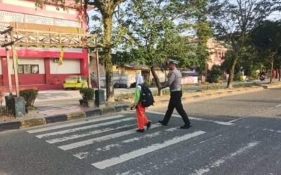 Sat Lantas Polres PPU Kawal Pelajar Menyeberang Jalan, Wujudkan Pelayanan Prima dan Keselamatan Berlalu Lintas