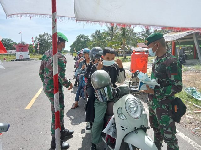 Satgas Pamtas Yonif Mekanis 643/Wns Bantu Amankan Arus Mudik Dan Terapkan Protokol Kesehatan Di Desa Wisata Perbatasan.