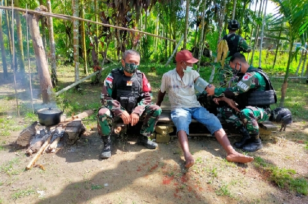 Berikan Pelayan Kesehatan Keliling, Satgas Yonif 512/QY Imbau Warga Patuhi Prokes