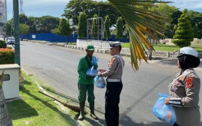 Satlantas Polres Lhokseumawe Gelar Kegiatan Jumat Barokah, Berbagi Sembako kepada Petugas Kebersihan