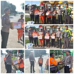 Berbagi Kasih, Satuan Lalu Lintas Polres Teluk Bintuni Salurkan Bantuan Sosial Kepada Para Tenaga Kebersihan Jalan.