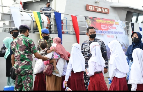 Untuk Menarik Minat Anak-Anak, Serbuan Vaksin Dilaksanakan di KRI Terapang 648
