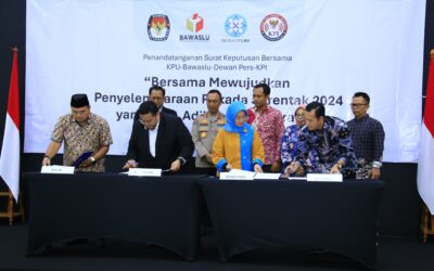 Jakarta. – jurnalpolisi.id Kadivhumas Polri Irjen. Pol. Sandi Nugroho menghadiri penandatanganan Surat Keputusan Bersama (SKB) KPU, Bawaslu, KPI, dan Dewan Pers. SKB tersebut mengenai pembentukan Gugus Tugas Pemantauan Pemberitaan Pilkada 2024. Kadivhumas Polri menyampaikan, Pemilukada Serentak 2024 merupakan momen penting bagi bangsa Indonesia untuk memilih pemimpin daerah. Oleh karena itu, semua pihak harus berkomitmen untuk…