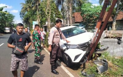 Purbalingga – Jateng , jurnalpolisi.id Kecelakaan lalu lintas tunggal menimpa sebuah mobil yang melintas di Desa Pangempon, Kecamatan Kejobong, Kabupaten Purbalingga, Minggu (15/10/2023) pagi. Mobil keluar jalur kemudian menabrak pagar dan tiang kabel internet. Pelaksana tugas (Plt) Kapolsek Kejobong AKP Edi Surono mengatakan kecelakaan tunggal menimpa mobil jenis Daihatsu Terios warna putih bernomor polisi A-1154-JH…