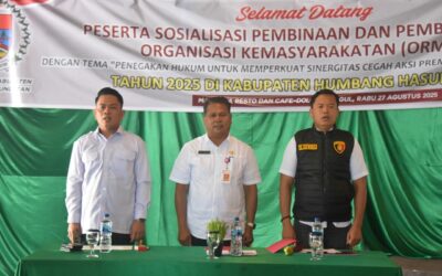 Humbahas – jurnalpolisi.id Pemerintah Kabupaten Humbang Hasundutan melalui Badan Kesatuan Bangsa dan Politik (Kesbangpol) menggelar kegiatan Sosialisasi Pembinaan dan Pemberdayaan Organisasi Kemasyarakatan (Ormas) di Marbona Café dan Resto, Rabu, 27//8/2025.Kegiatan ini dibuka secara resmi oleh Bupati Humbang Hasundutan, Dr. Oloan P. Nababan, SH, MH diwakili Asisten Pemerintahan dan Kesra, Jaulim Simanullang. Dalam sambutannya, Bupati Humbang…