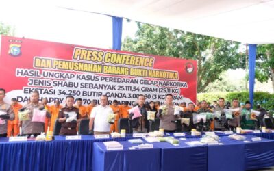Riau, jurnalpolisi.id Dit Narkoba Polda Riau berhasil menggagalkan peredaran gelap narkoba jenis sabu sebanyak 25 Kg dan 34.000 pil ekstasi selama dua bulan terakhir. Seluruh barang haram itu pun dimusnahkan pada 12 Juli 2024. Dalam pemusnahan tersebut, Kapolda Riau Irjen. Pol. Mohammad Iqbal mengultimatum para bandar narkoba untuk tidak lagi menjalankan bisnis haram tersebut di…