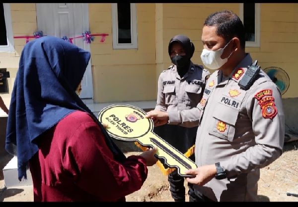 Tetes Air Mata Bahagia Kartini Saat Menerima Bantuan Rumah Dhuafa Dari Polres Aceh Timur