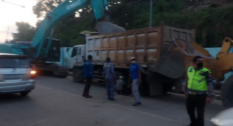 Truk Terguling, Satlantas Polres Cilegon Evakuasi Kecelakaan