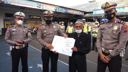 Kebumen – jurnalpolisi Pariyo kakek 70 tahun asal Desa Kuwarisan, Kecamatan Kutowinangun, Kebumen mendapatkan penghargaan sebagai Tokoh Local Heroes dari Sat Lantas Polres Kebumen karena dedikasinya ikut membantu kelancaran berlalu-lintas dan menjaga situasi Kamtibmas yang kondusif di desanya. Pariyo yang sehari-hari berprofesi sebagai tukang becak pagi ini diundang secara langsung ke Sat Lantas dan mendapatkan…