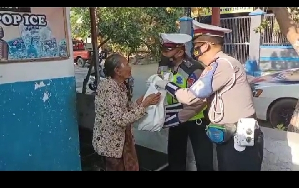 Unit PJR Jatim V Situbondo Sat PJR Ditlantas Polda Jatim melaksanakan kegiatan Pembagian Bansos