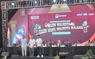 Malang- jurnalpolisi.id Rapat Pleno terbuka pengundian dan penetapan nomer urut pasangan calon Walikota dan Wakil Walikota Malang resmi dilaksanakan di Hotel Ijen Suites Ballroom pada, Senin (23/9/2024) Sebelumnya acara dibuka oleh ketua KPU kota Malang M.Toyyib dan menyatakan bahwa acara ini sudah sesuai dengan regurasi PKPU, selanjutnya Ali Akbar teknis penyelenggaraan membacakan tatip dan mekanisme…