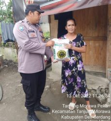 Polsek Tanjung Morawa Berikan Bansos Kepada Masyarakat Untuk Ringankan Ekonomi Masyarakat Terdampak Kenaikan BBM
