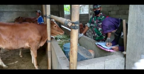 Solidaritas Babinsa dalam kegiatan Vaksinasi Hewan Ternak diwilayah Desa binaan