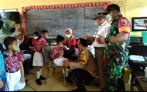 Bhabinkamtibmas dan Bhabinsa Monitoring Vaksinasi Anak di SDN 01, 02, 03 Kel Karang Rejo-Sumbersari-Jember.