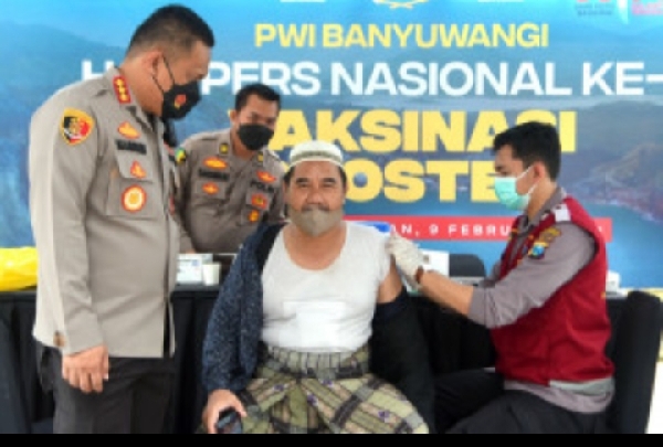 Banyuwangi – jurnalpolisi.id Memperingati Hari Pers Nasional, Persatuan Wartawan Indonesia (PWI) Banyuwangi menggandeng Pemkab Banyuwangi, Polresta, dan TNI menggelar vaksinasi booster. Dari rangkaian kegiatan yang digelar sejak awal bulan Februari, terdata 760 warga disuntik vaksinasi ketiga. Kegiatan ini digelar di RTH Taman Blambangan, Banyuwangi, Rabu (9/2/2022). Vaksinasi digelar sebelum kegiatan tasyakuran dan pemotongan tumpeng dalam rangka peringatan HPN…